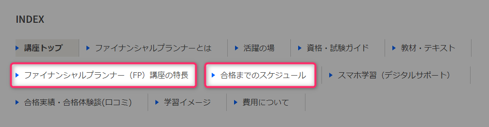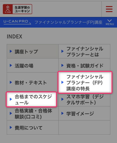 どちらのページもユーキャンFP講座トップページの下部「INDEX」から移動できます。ぜひ参考にしてみてください。