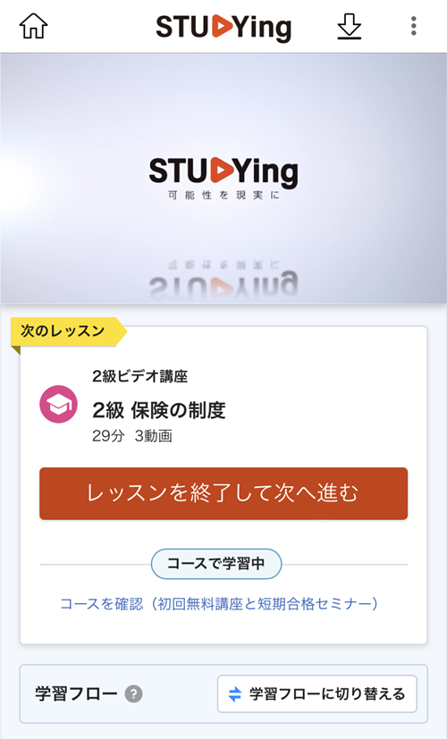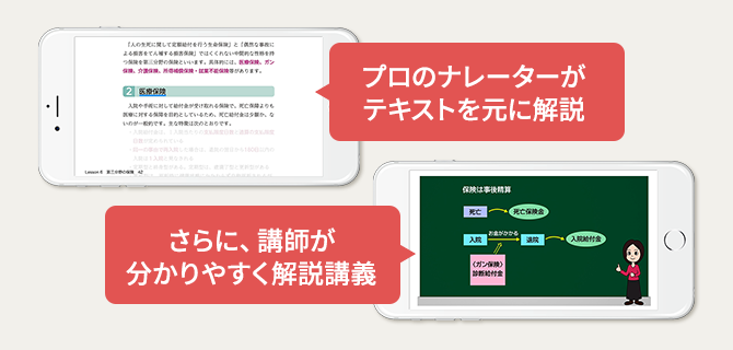 スタディングFP講座の最大の特徴はオンライン特化であること。iPhone・Androidで使えるスタディングアプリが提供されており、これを使って講義動画を視聴・テキストの閲覧・問題演習ができます。